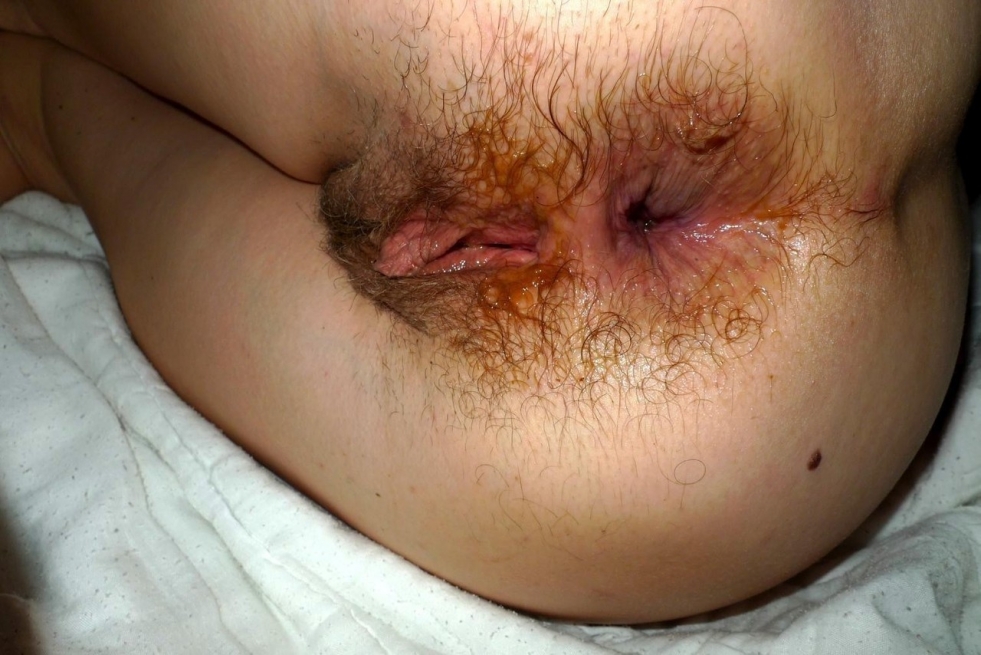Hairy female anus closeup