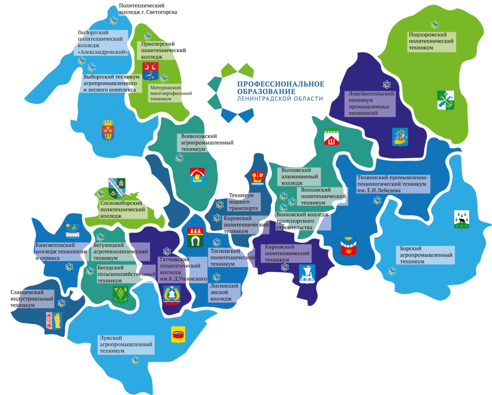 Areas of Leningrad Region on the map