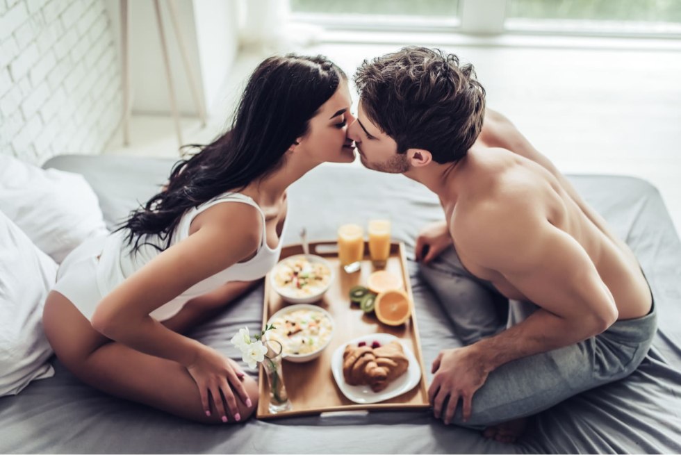 Passionate kisses in bed