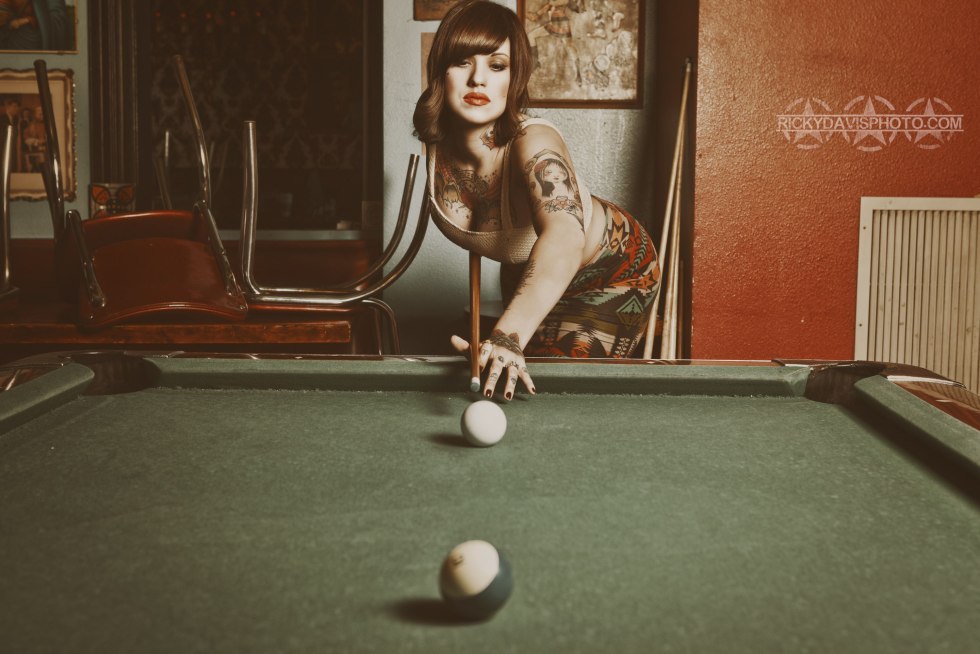 Mandy di on a billiard table