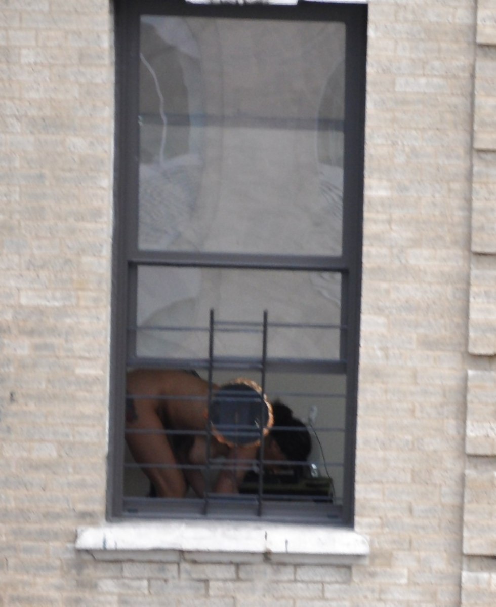 Peeping out the windows behind naked