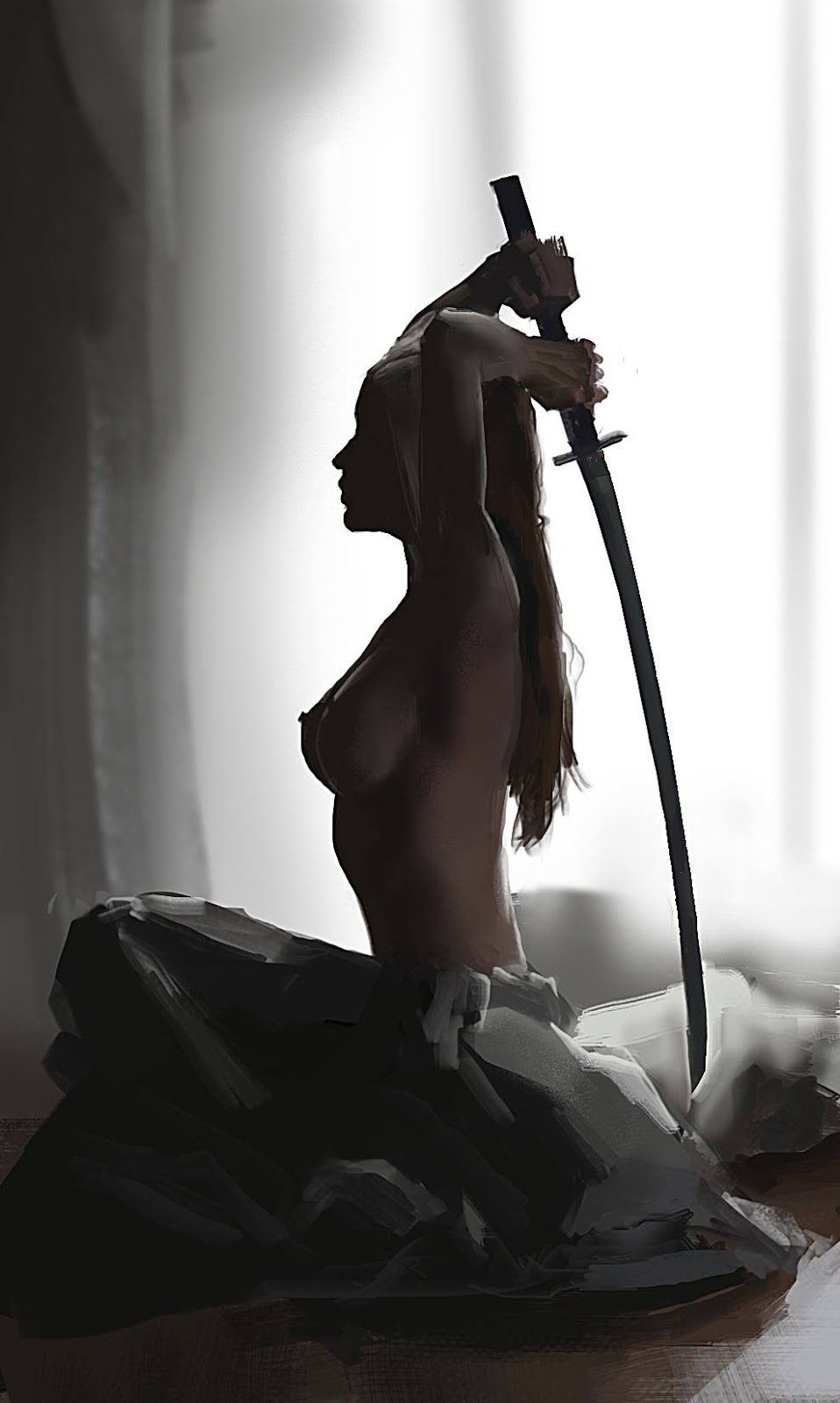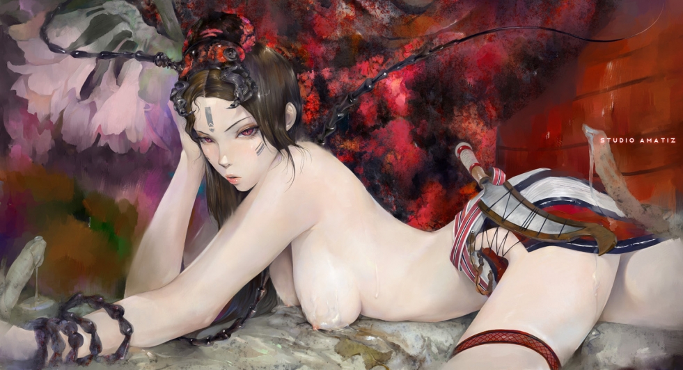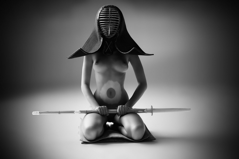 Naked sexy woman in samurai style