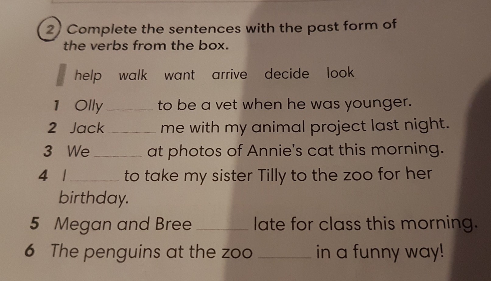 Complete The Sentences with the Verbs on the Right in Past Simple Grade 5