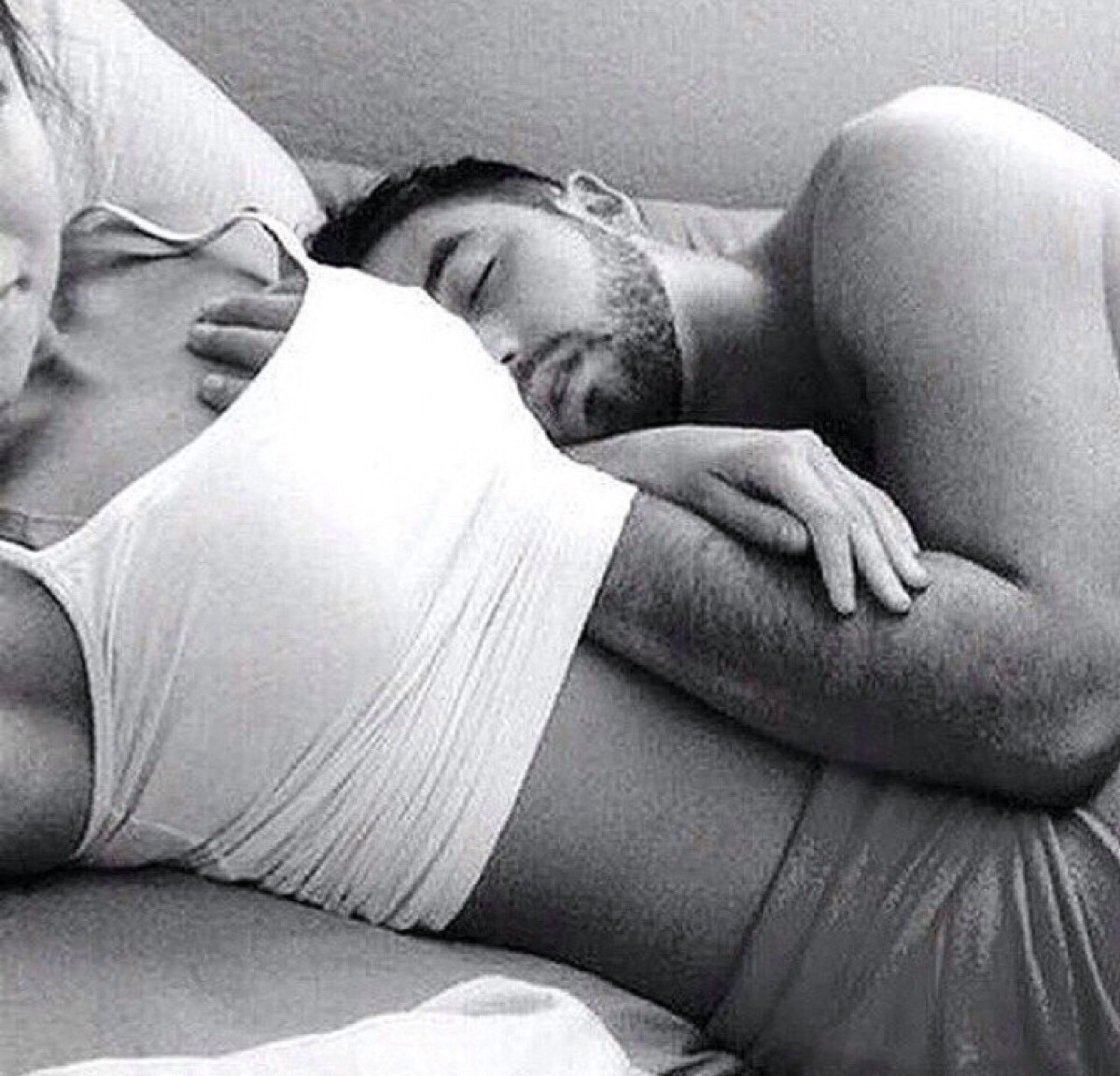 In an embrace in bed