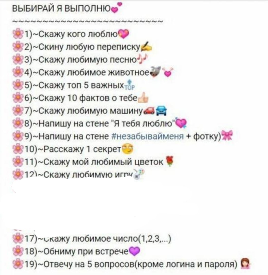 Numbers with tasks for VK for a guy