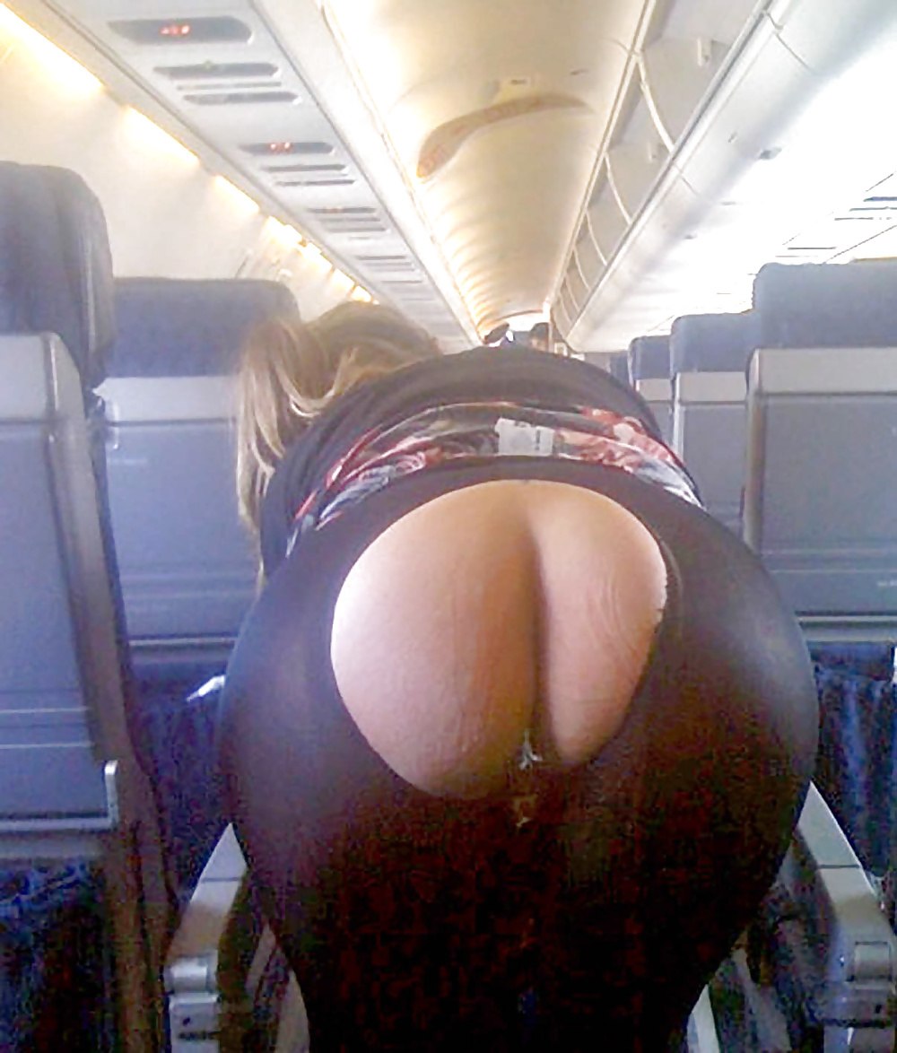 Girls on an airplane without panties