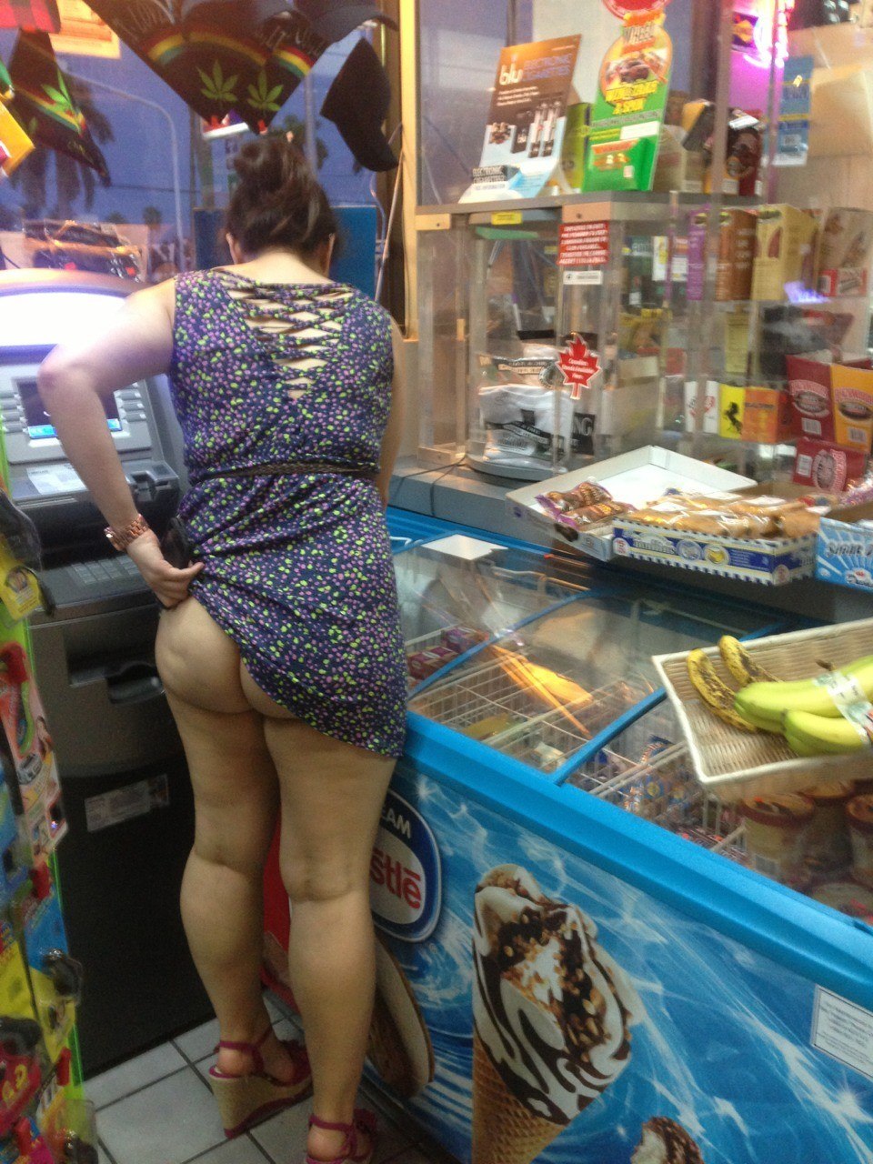 Girls without panties in the store