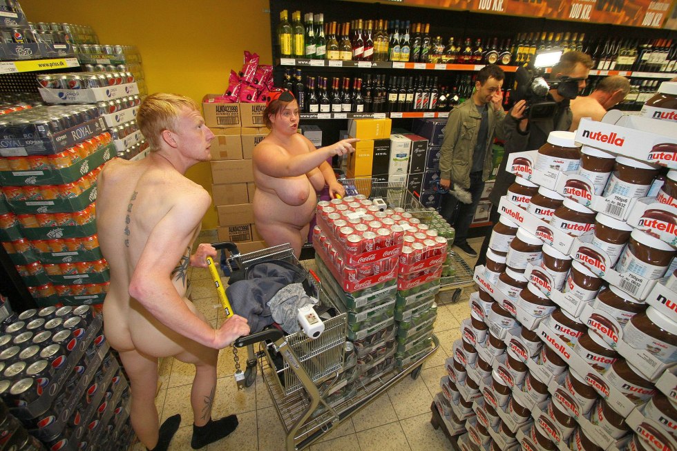 Naked women in a supermarket