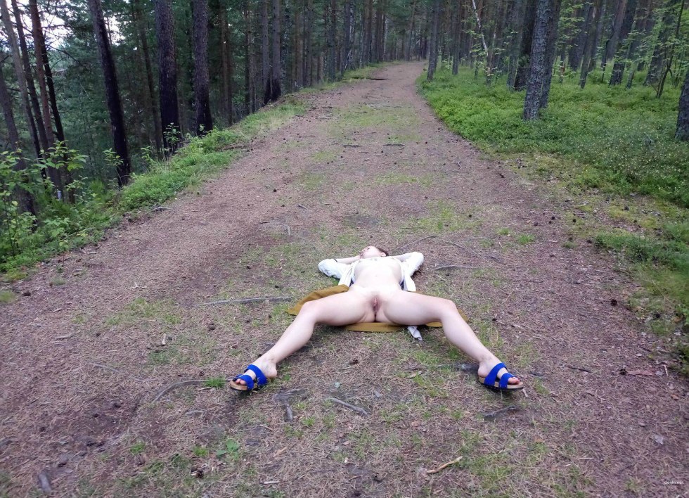 Naked spread her legs in the forest