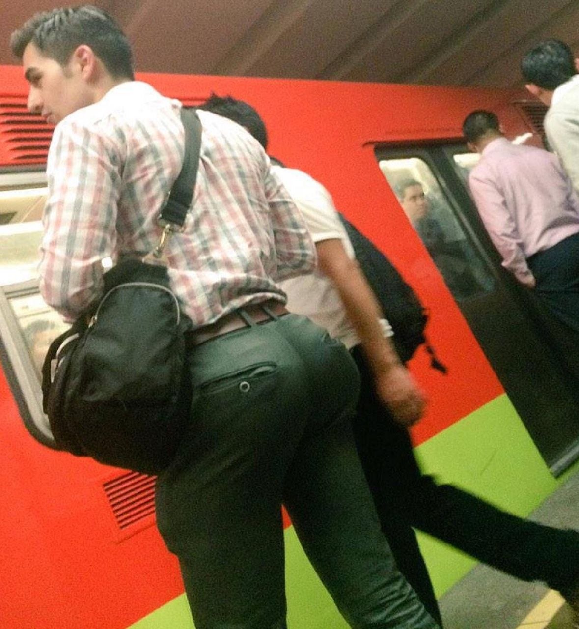Men in trousers in the subway