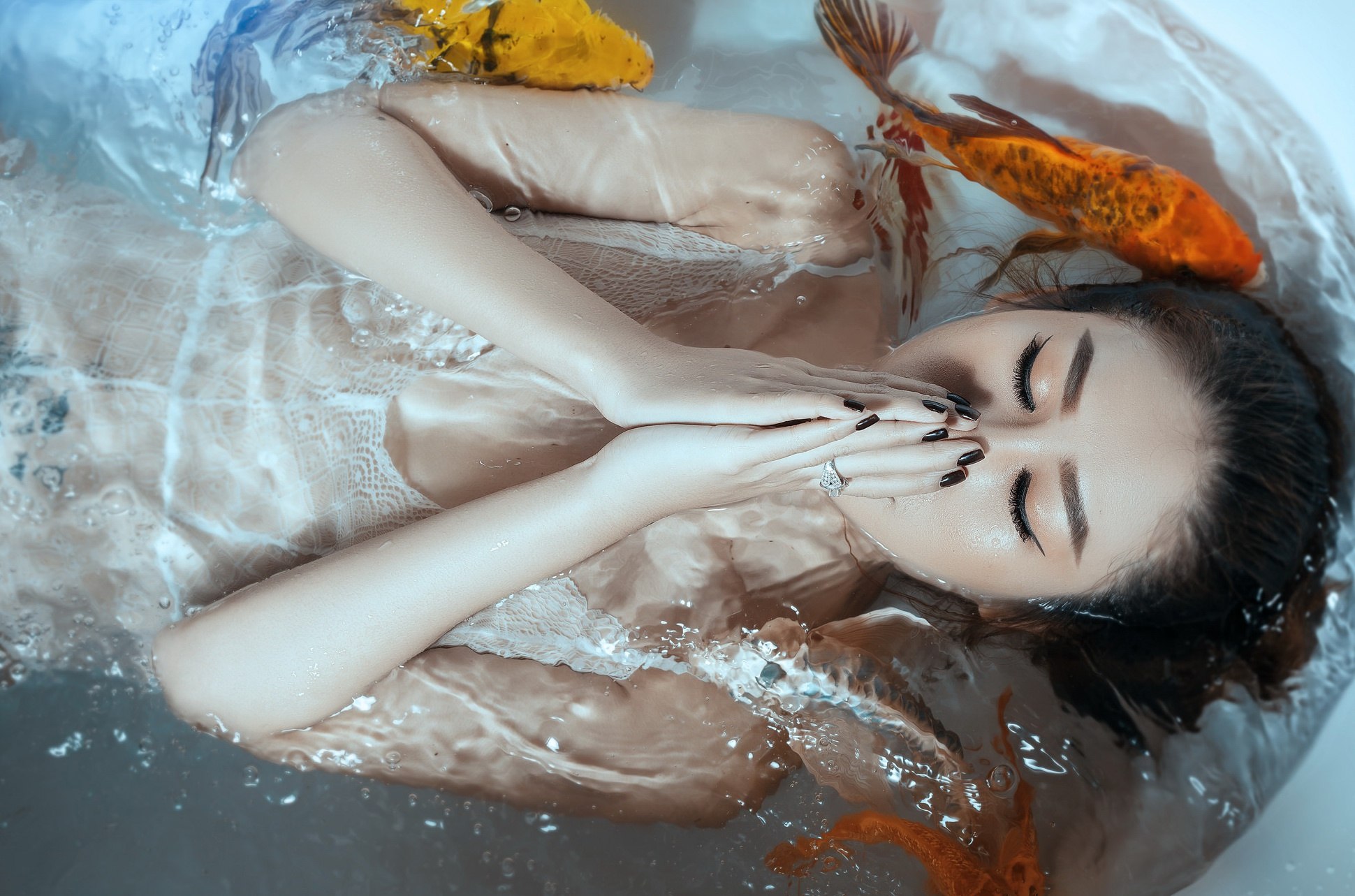 Girl with fish in the bath