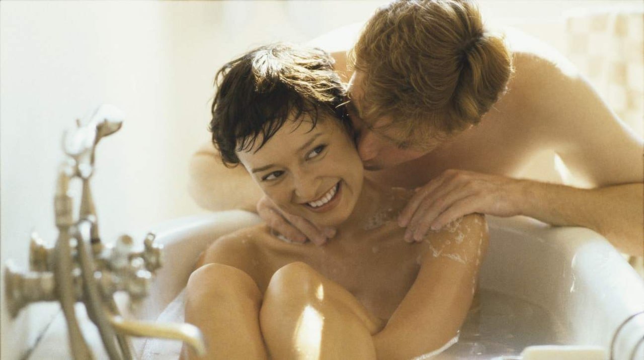 A guy with a girl in a bath