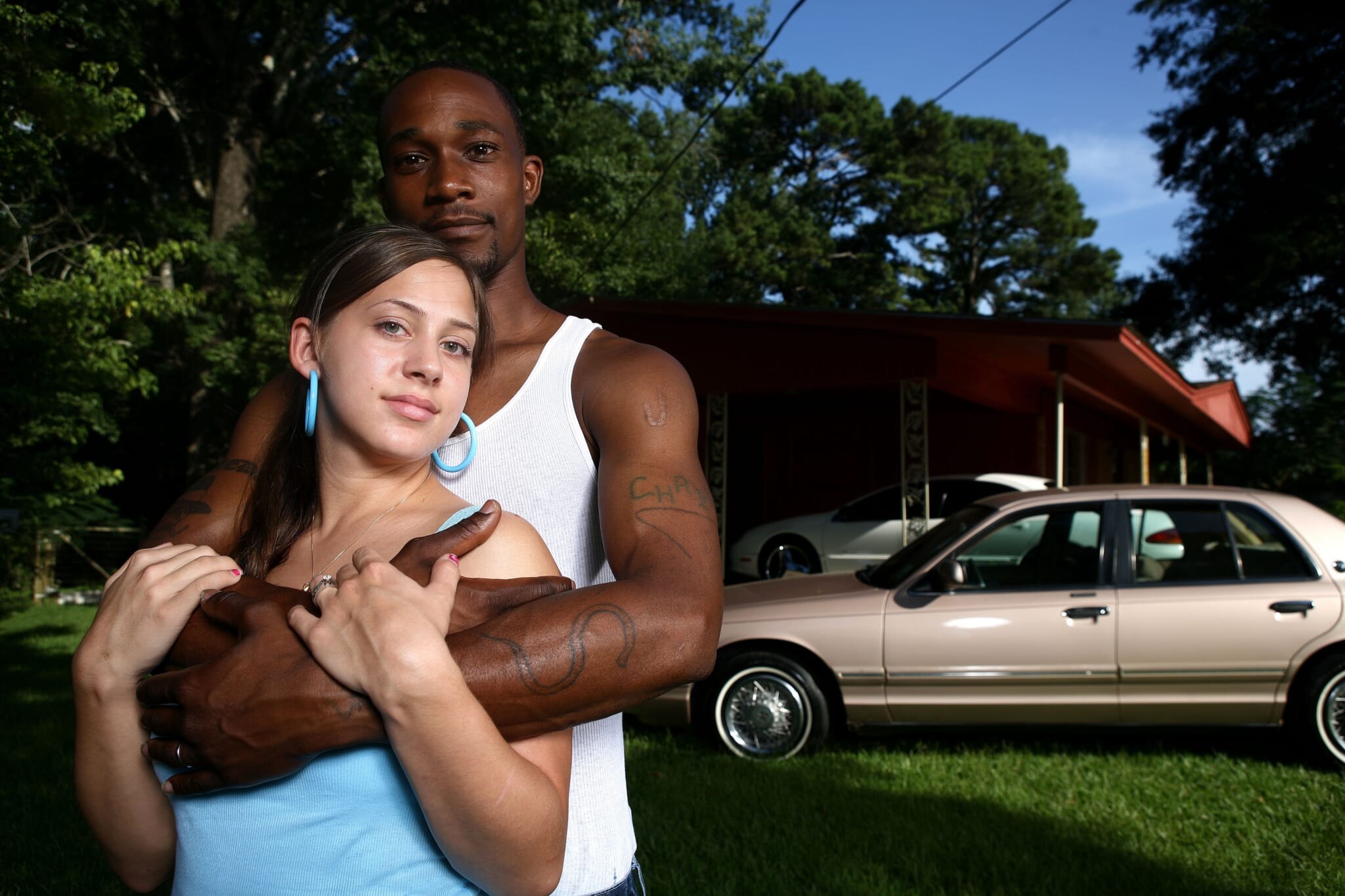 Negro hugs the girl