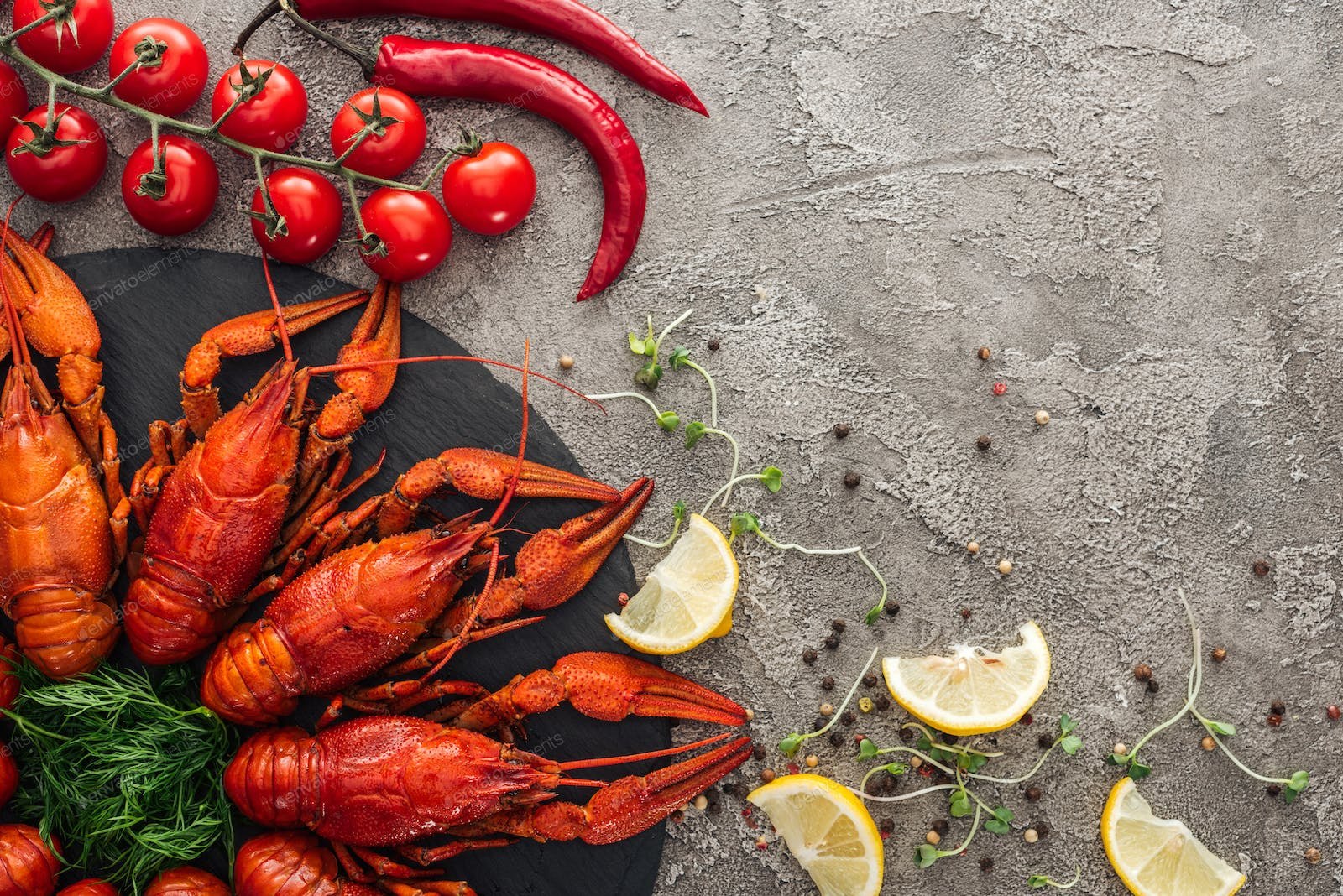 Lobster on Black Plate Top View
